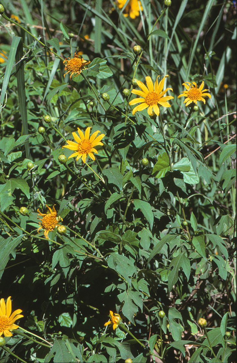 Erect, course annual herb to 2.5m, stems rough to touch, often blotched purple. …