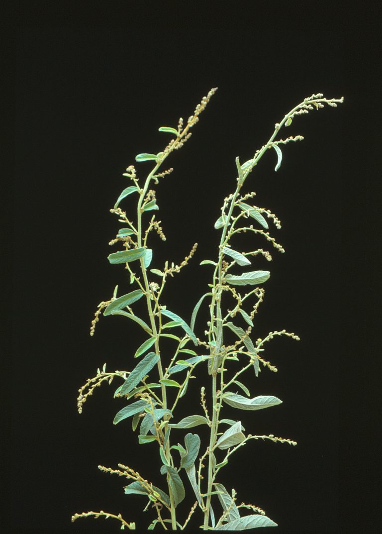 Erect annual sub-shrub 1-3m tall. Young stems and leaves with spreading hairs, becoming glabrous as …