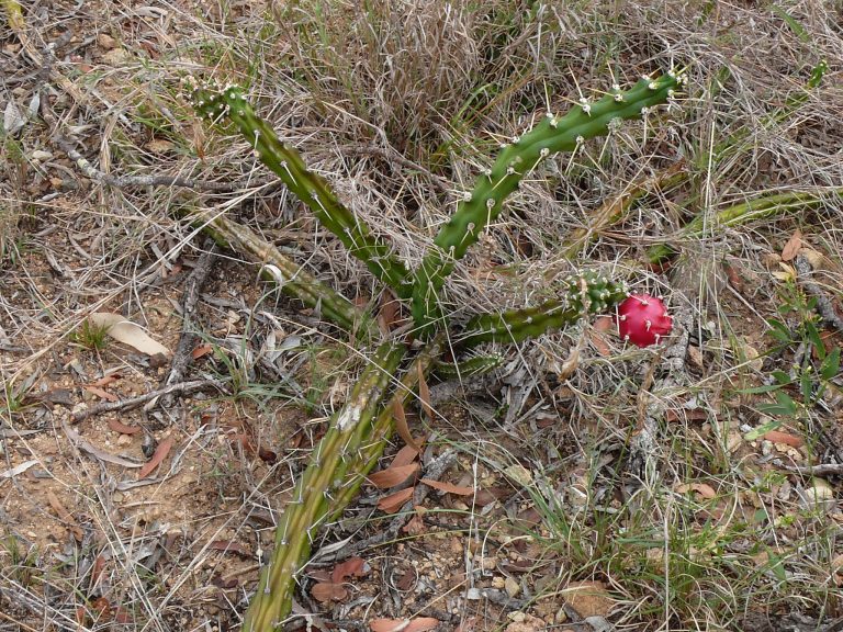 Perennial, much-branched vigorous cactus. Young stems 5-6 angled ‘warty’ bearing many groups of …