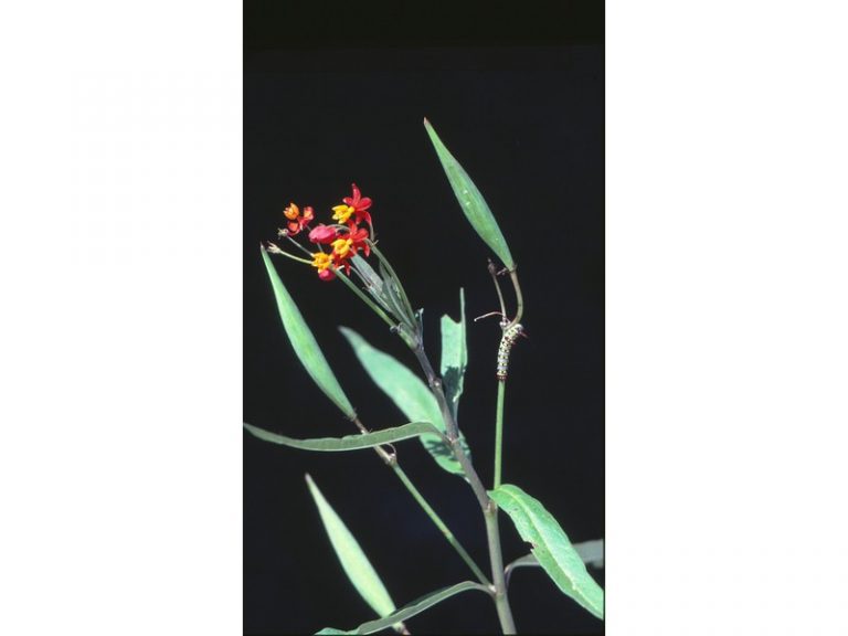 Erect perennial herb with copious milky sap, growing 1-1.5m. Stems green at the base and purplish …