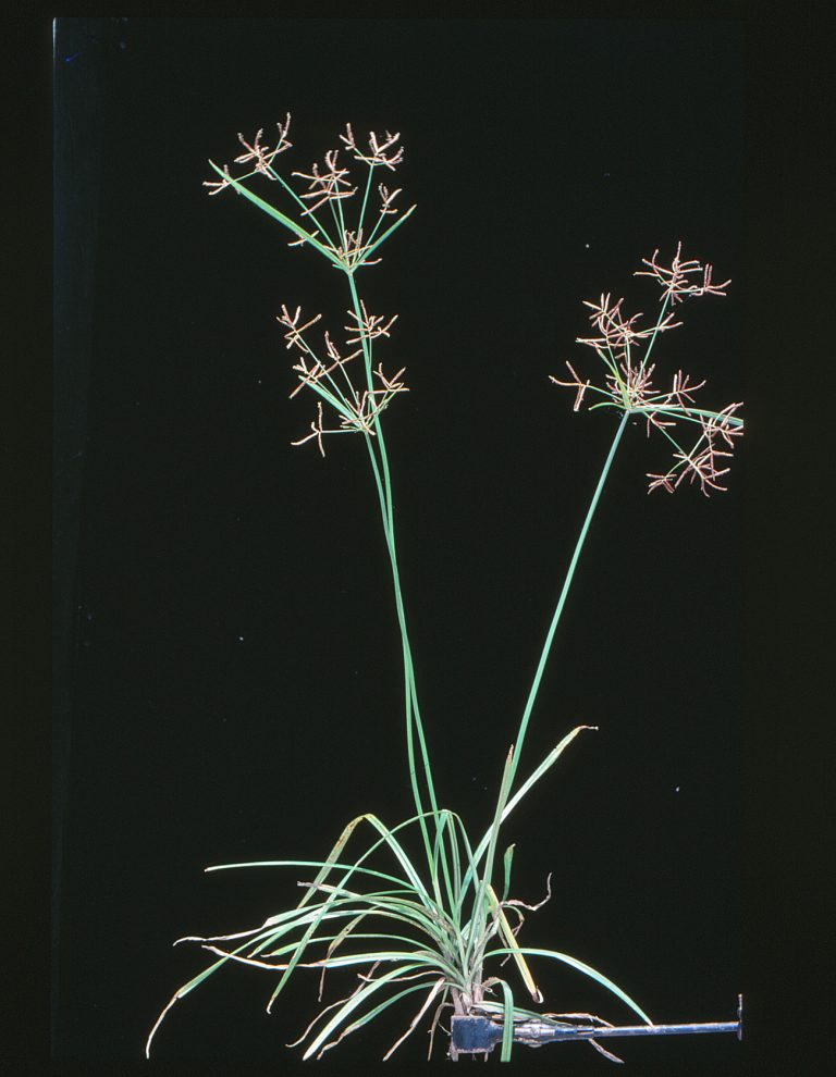 Perennial sedge to 40cm tall, stems rigid 3-angled, 1-2mm thick, with tuberous base; underground …